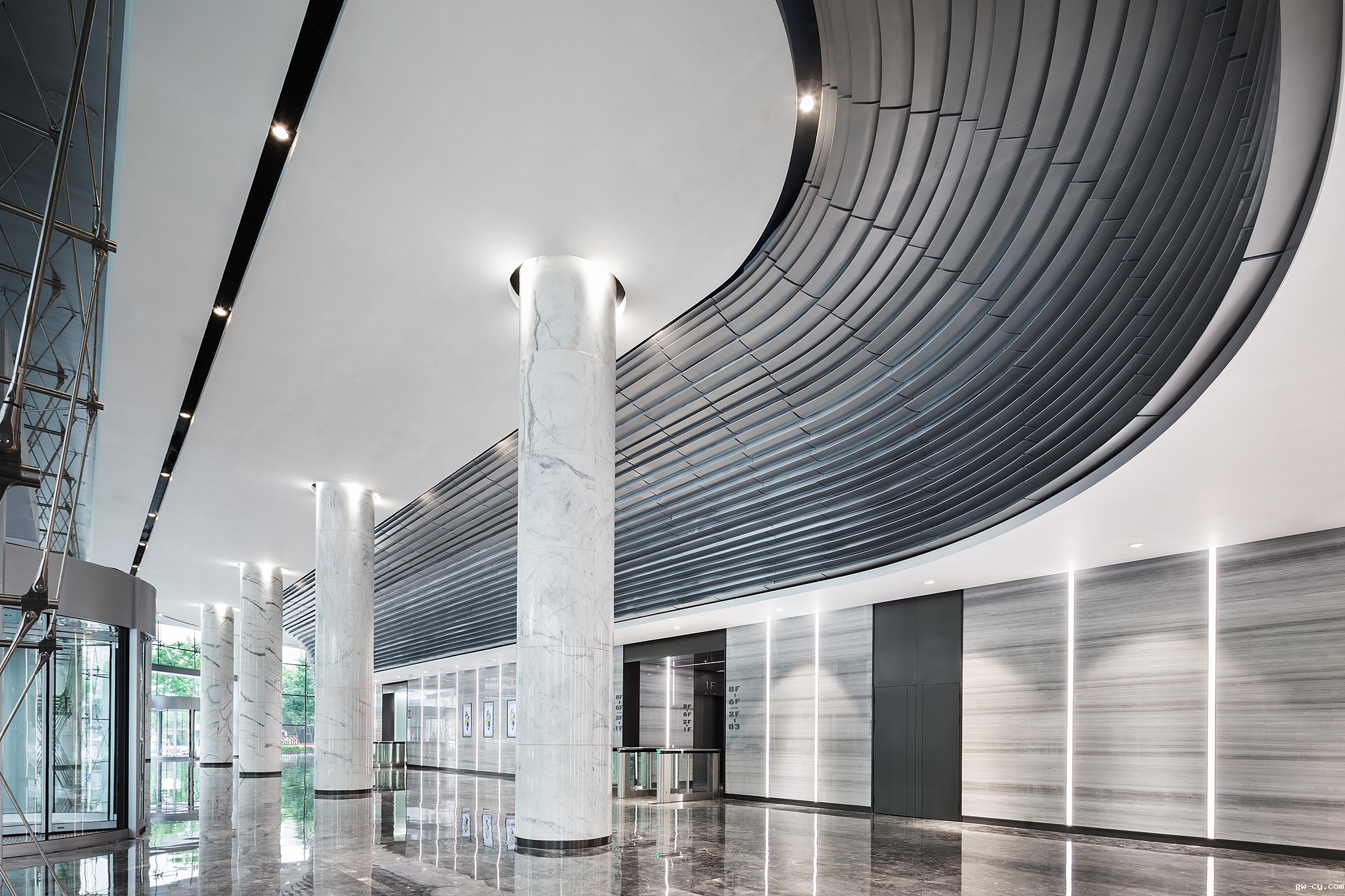 项目范围内的绿色植栽、仿生形态的木饰面及天然石材、大面积幕墙自然采光等亲生命设计,提供了人们亲近大自然的机会,有效提升用户在工作环境的心理幸福感。