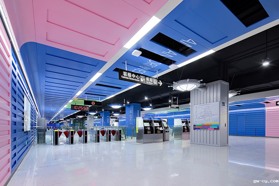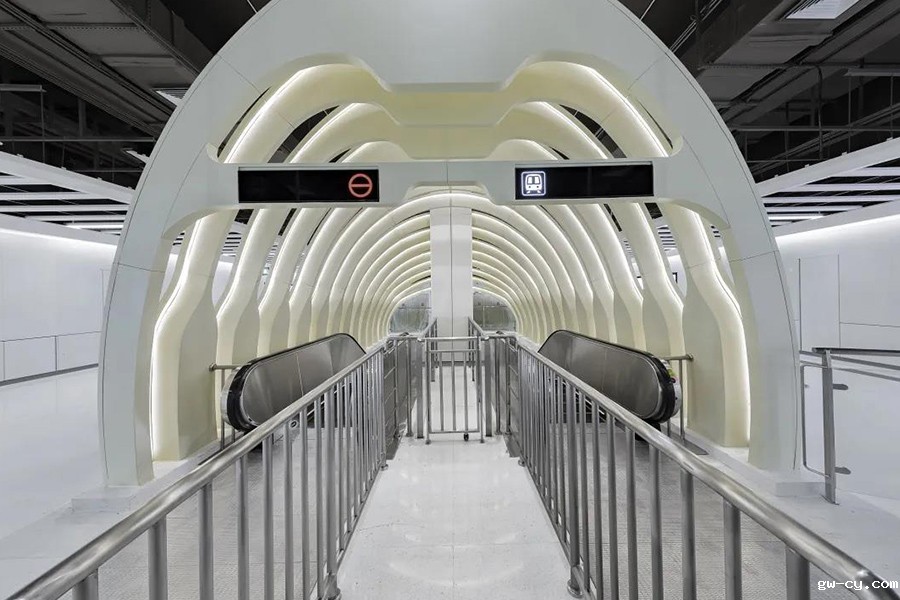 扶梯洞口处通过抽象鱼骨架造型进行装饰,