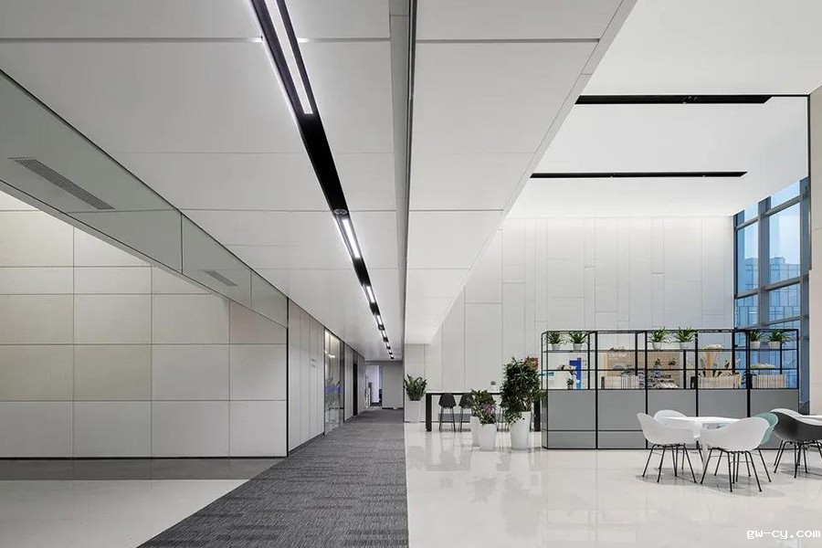 在设计中J&A强调材料选择与装饰细节处理,整体空间无过多造型,以基本的线、面两个基本元素进行空间体块设计,打造干净、简洁、具有现代科技感的空间。