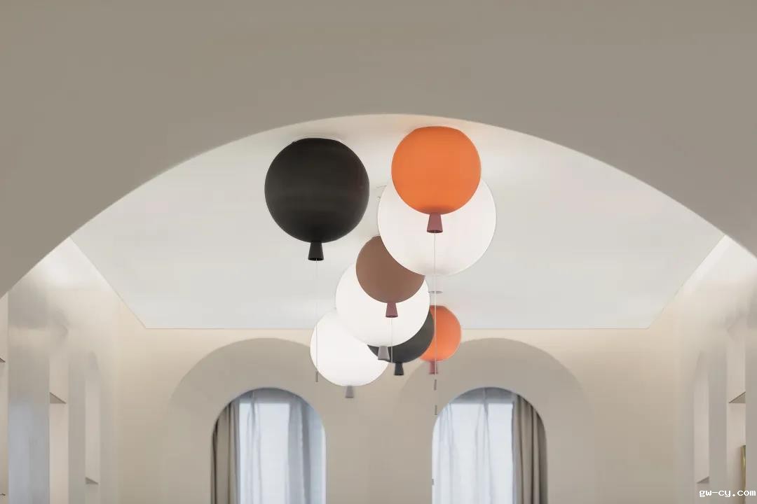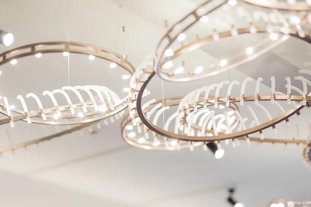 设计不仅是功能的展现,同时也具有科学性和艺术美学,自然而然地渗透进每一位观者的思维之中。莫比乌斯环现象寓意循环与反复,设计师将它的概念重置,将艺术吊灯的层叠环绕,众多完整成圈的线条,组合成抽象精神的具象之形,达到了形式与结构,形式与功能的合理关系,形成了在空间上永动连续的空间形式。