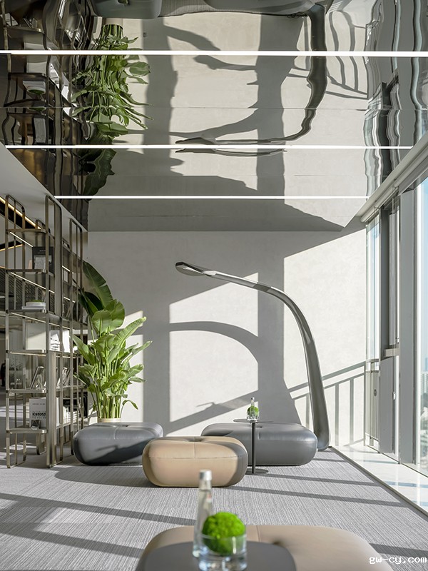 沿袭古人对山水的推崇,J&A在现代空间美学中融入东方意境,描绘出一个清透、内敛的诗意空间。镜面天花让空间无限拉伸,折射出一个别样的镜像世界,亦真亦幻,增添了空间的趣味性。
