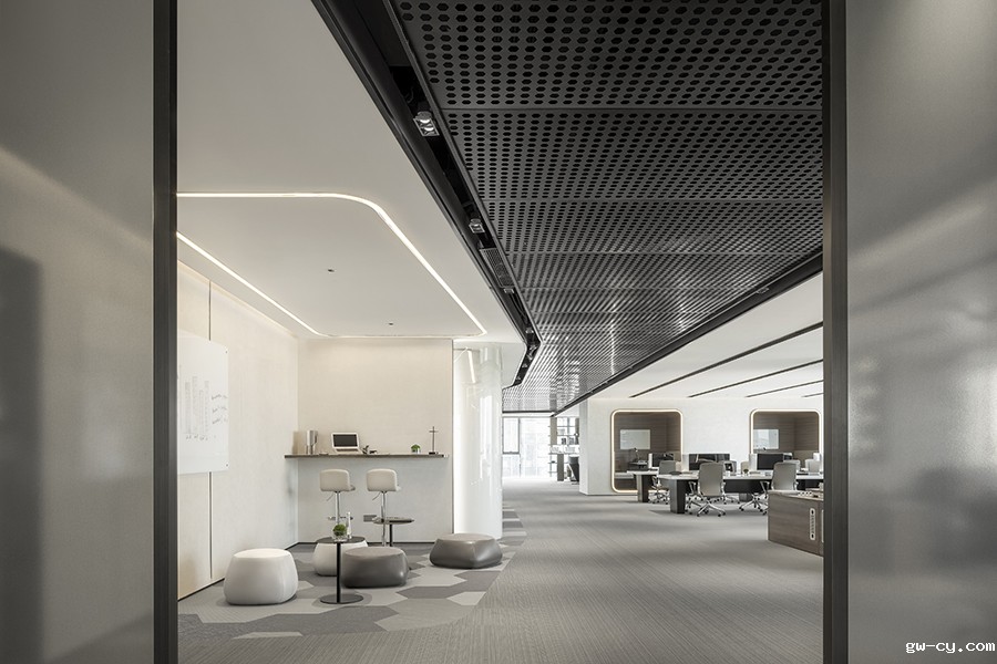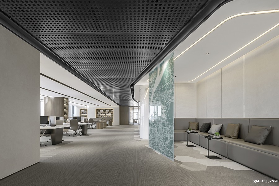 简约的设计手法,实现了空间元素在视觉上的和谐统一,打造出“雅致东方”风格的高级质感,呈现空间意境之美。办公区、等待区、待客区、会议区、洽谈区、观景区等场景的边界不断融合,塑造着空间的独特气质。