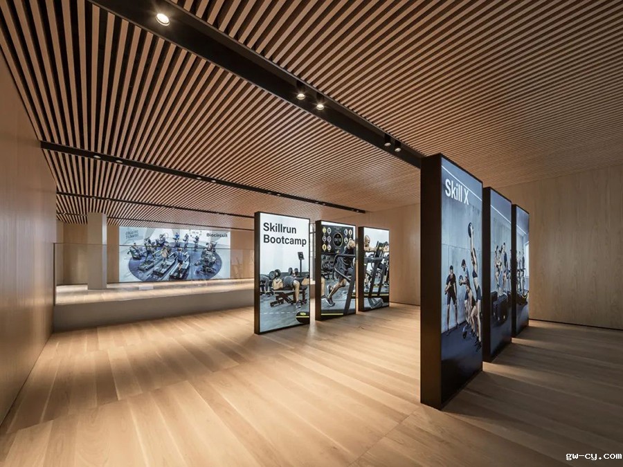 空间设计如何为用户提供舒适的运动环境,带来愉快的健康体验?以简约设计为主,泰诺健展厅的设计试图通过材质本身来呈现空间的质感。