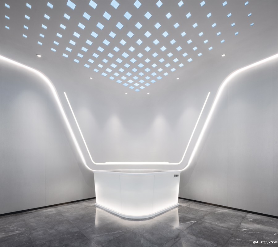 大厅天花和墙面一体化的设计采用参数化技术,提升效率,保证落地效果。