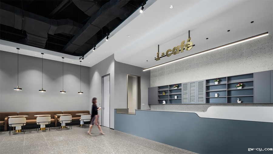 延续建筑灵动的结构,设计团队在墙面及天花融入弧线形灯光,舒展的线条中和了大面积金属色带来的沉闷感,营造出精致且富有科技灵动感的空间氛围。