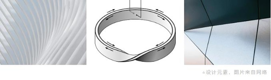 J&A在室内空间设计中延续建筑灵动的曲线,将莫比乌斯环循环往复的几何特征被运用在空间设计中,镜像与环带蕴含的永恒、无限、创新意义,为空间延伸带来无限可能性。