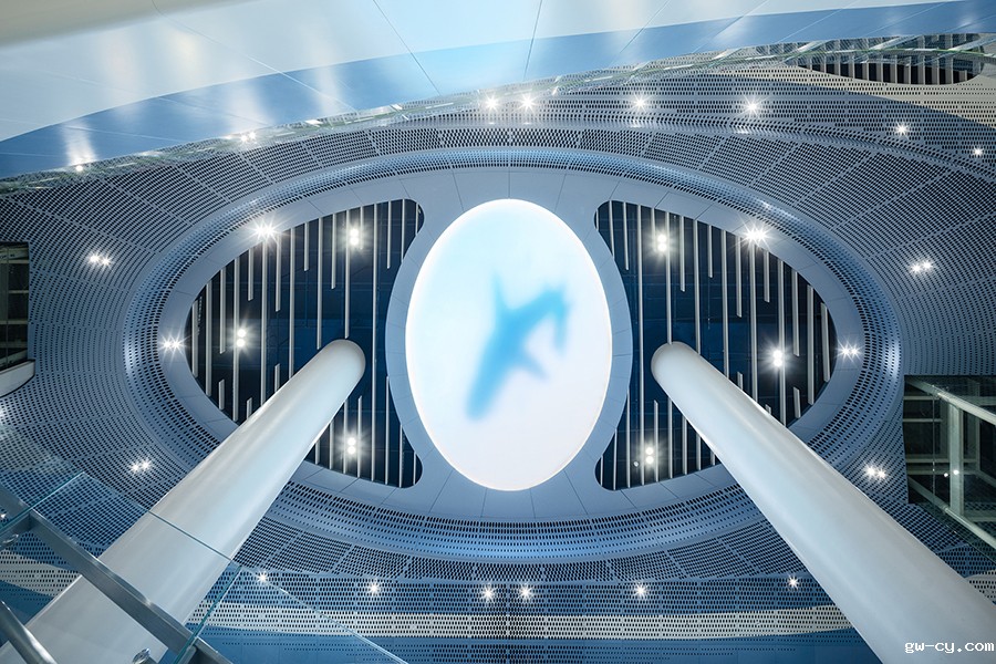 在空间视觉上结合建筑特色,以流线的形式虚实结合释放了天窗区域,提升空间视觉感受与品质。