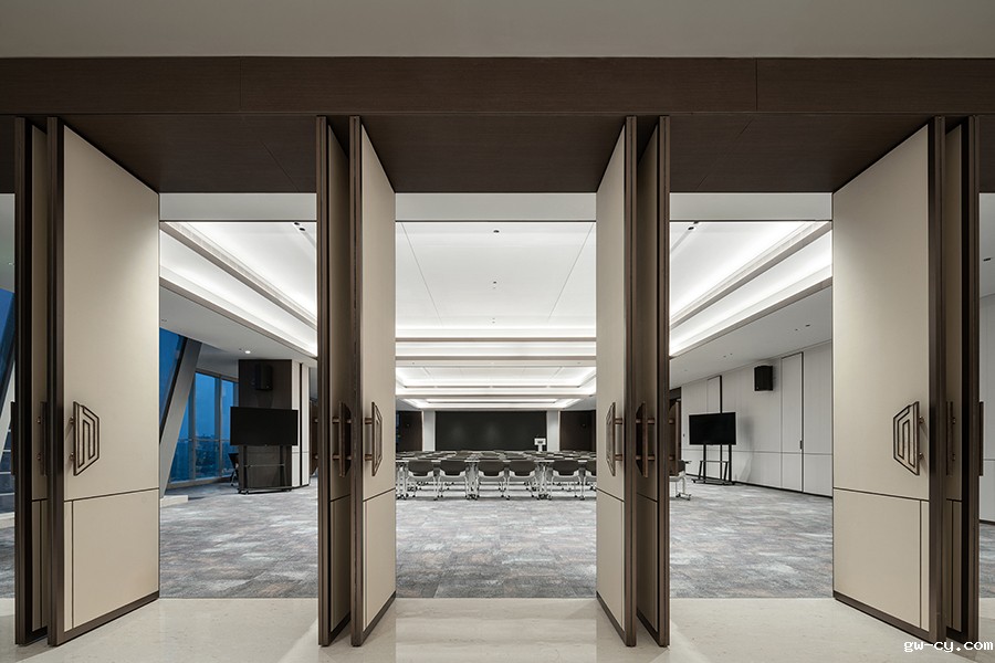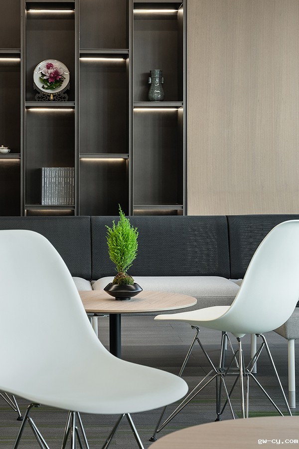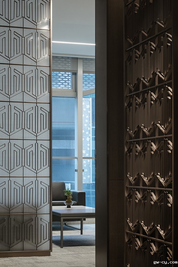 为强调河南资产总部的专属性,设计团队把企业标识转换为设计元素应用在屏风上,将企业独特的基因渗透到室内空间的各个角落。