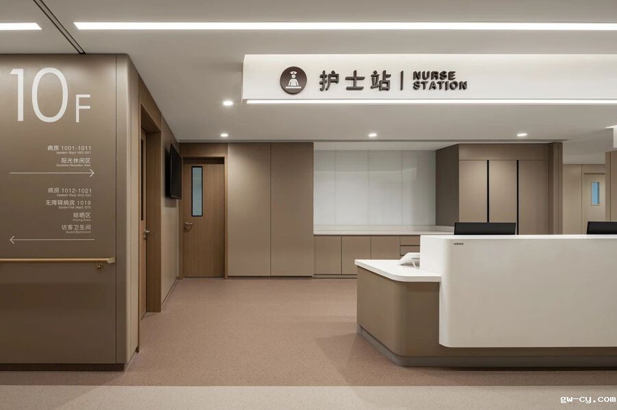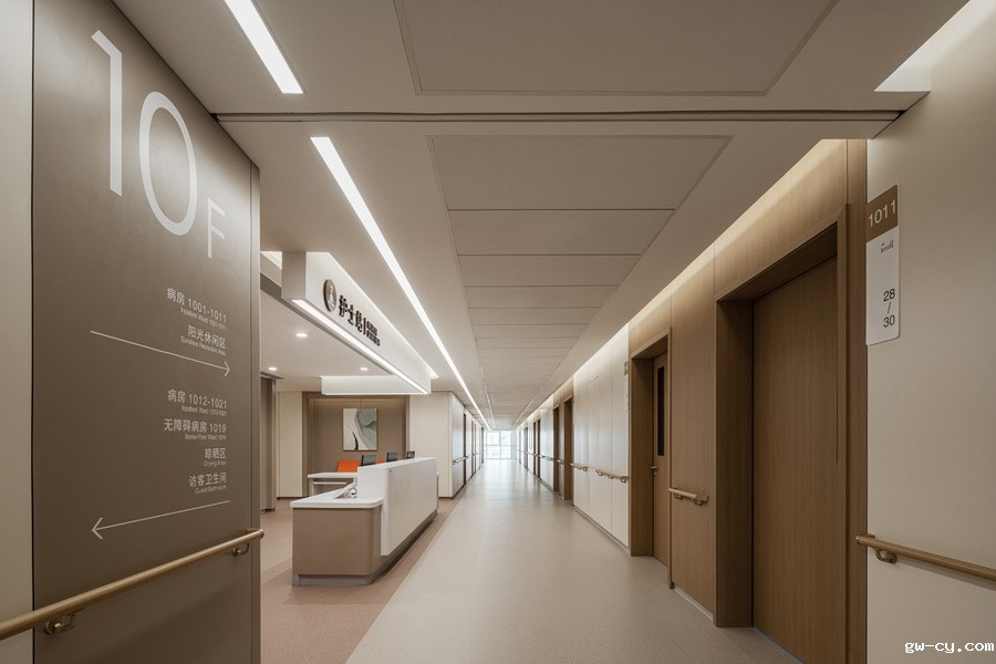 住院区域不仅需要能提供一个功能性强、效率高的医疗服务环境,还要通过自然元素的融入,为病人和医护人员创造出一个舒适、疗愈的空间,病人的身心恢复以及医护人员的身心健康。