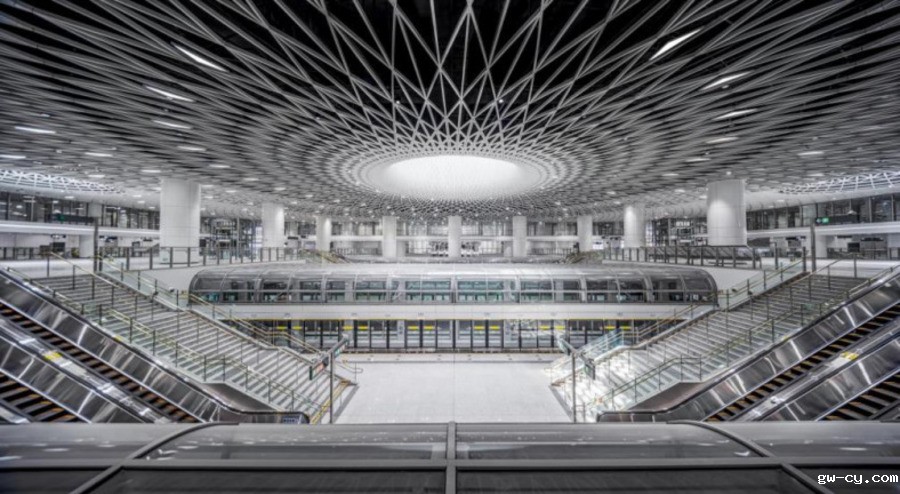 考虑到深圳之眼岗厦北交通枢纽作为深圳城市地标、乃至全国标志性综合体的重要意义,J&A在前期构思上就确定了项目的主基调。作为多条地铁的交汇处,岗厦北交通枢纽占地数十万平方米,设计师希望向地下空间中引入更多自然光线,并打造一个具有强烈视觉冲击力的空间形态。为此,设计采用了费马罗线这一参数化设计模型,将数学和图形艺术相结合,营造出具有前瞻性、未来感的视觉效果。同时,大部分原材料在工厂加工后,于施工现场安装,践行了低碳环保的设计理念。
