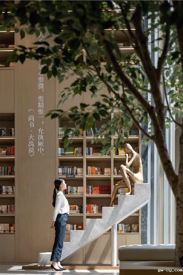 “惟一书院”作为五矿广场的展示与交流中心,同时也是湘江之畔首家24小时书院,彰显了五矿集团的文化格局和商业谋略。