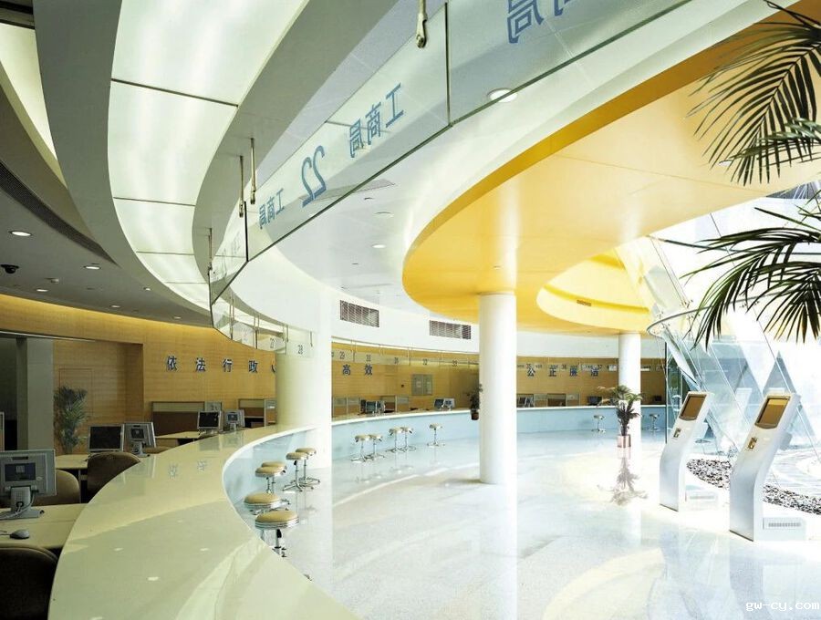 服务大厅开阔通透,中心内部拥有宽敞的公共空间和休憩场所,多个功能区分布合理,并在较早时期引入数字智能设施,提升了市民服务的质量,是深圳城市现代化治理的缩影。