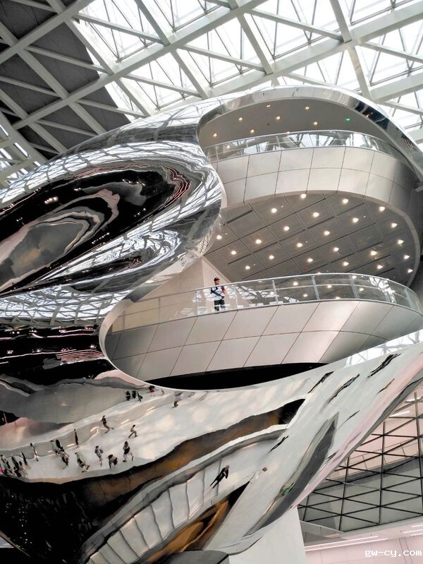 在室内设计方面,J&A结合“广场”和“云雕塑”等元素,运用BIM技术进行设计管理,在视觉上做到与建筑设计融为一体;同时,对光影和线条进行特殊处理,达到室内空间凹凸错落的效果,增强了立体感和动态美,体现了解构主义对空间的全新理解。