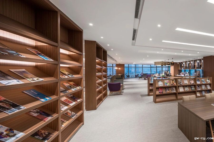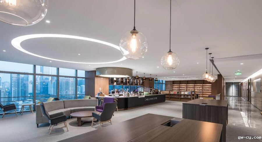 为了搭配科技感的建筑外立面,J&A以“海”文化为中心,融入现代感和流动感,将室内的材料、造型、机电、灯光等设计和谐地匹配整体建筑风格。由内而外散发出的包容感与未来感,也与大连的对外开放、拥抱未来的城市精神十分契合。