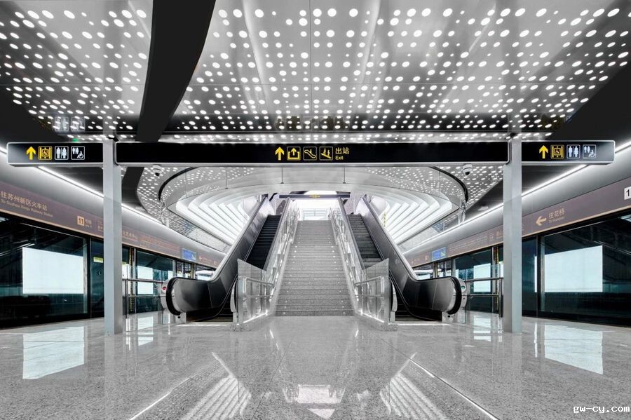 作为长三角一体化基础设施互联互通的一项示范工程,苏州轨道交通11号线线路全长41.27km,共设置28座车站,是苏州首条市域轨道交通线路,也是首条与上海轨道交通线网对接的线路,其建成运营对推动沪苏同城化发展等有着重要的示范意义。从站城视角出发,J&A在项目室内设计中,充分运用空间一体化设计原理,注重简约性、功能性、便民性、延续性、艺术性、创新性,呈现人文生态、舒适便捷、智能科技的地铁空间。