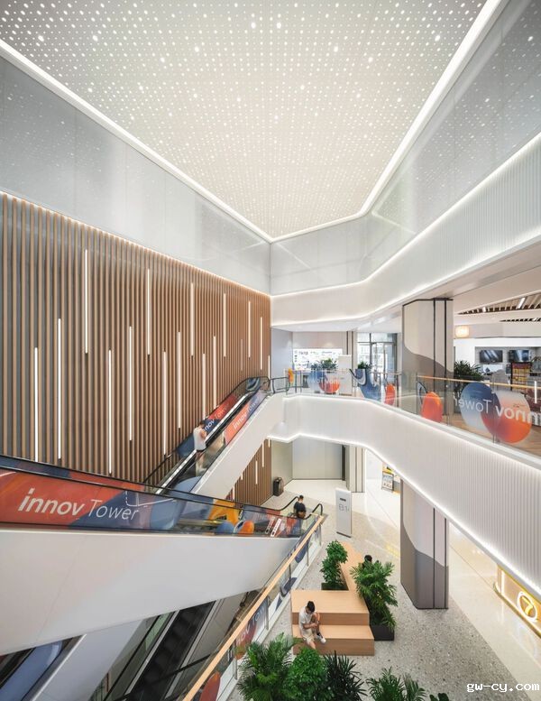 为了提升空间的开阔性和视觉冲击力,J&A使用裸眼3D屏幕和特色照明,通过材料和色彩合理搭配,增强了现代科技感。改造后的商业区,以其开阔的视野、流畅的线条和生机勃勃的环境,成为了一个充满活力的休闲后花园。
