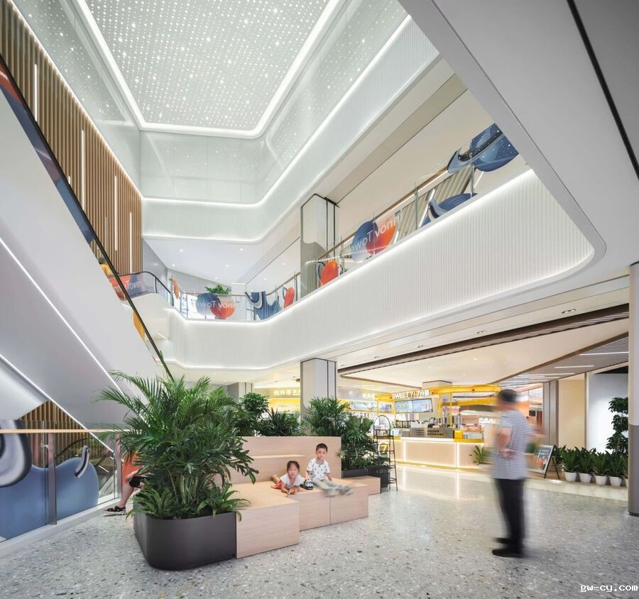 J&A以“生长自然 明亮轻松”为理念,对原有的商业区进行了全面的升级改造。通过巧妙的空间规划和创新设计,优化了中庭的尺度,增强了背景墙的吸引力,大幅释放了其商业潜力。