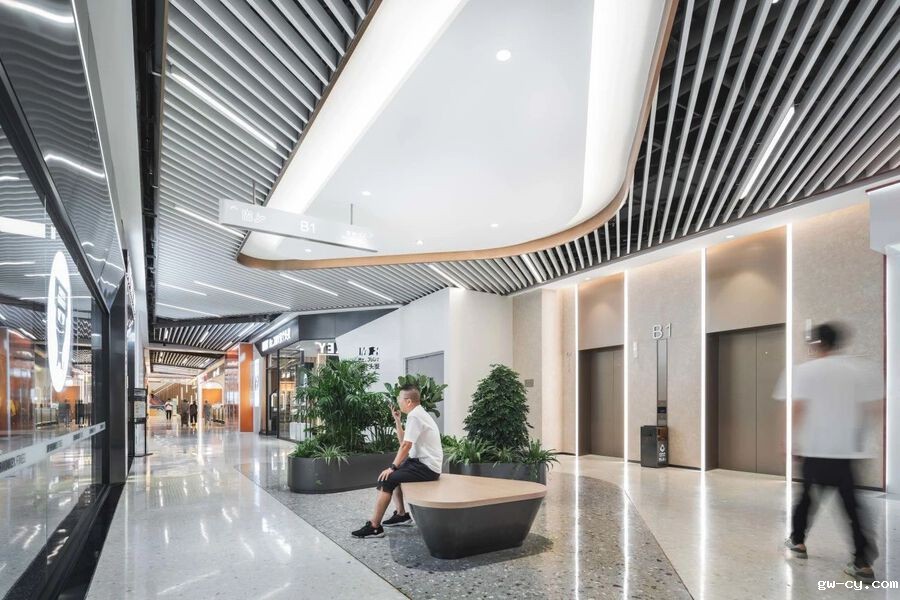在商业公区的革新里,J&A重点提升了导航效率与顾客体验,通过对动线结构与导视系统,确保在高峰时段,办公人士亦能快速定位心仪的店铺。在充分考虑顾客休闲需求后,增加了多个家居装置和绿植元素,为人们提供更宜人、健康的休闲场所。