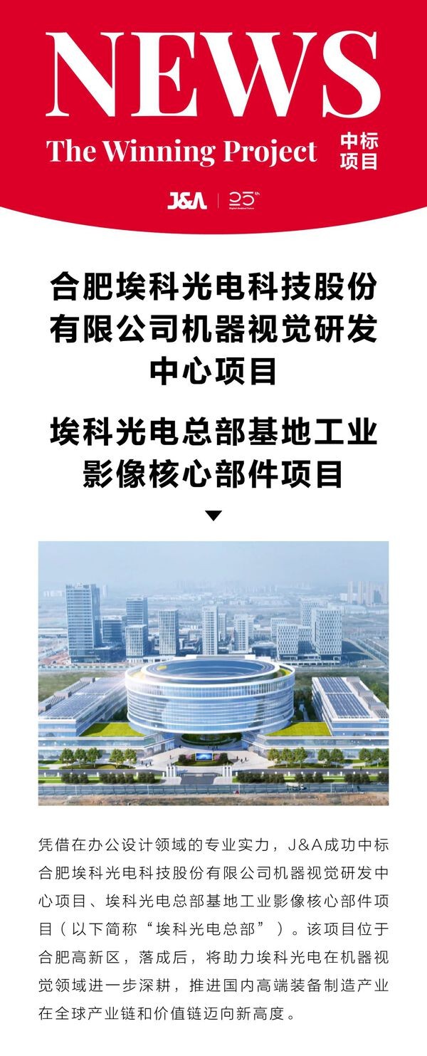 杰恩头条 | J&A中标合肥埃科光电总部 推动高端制造迈向国际新高度