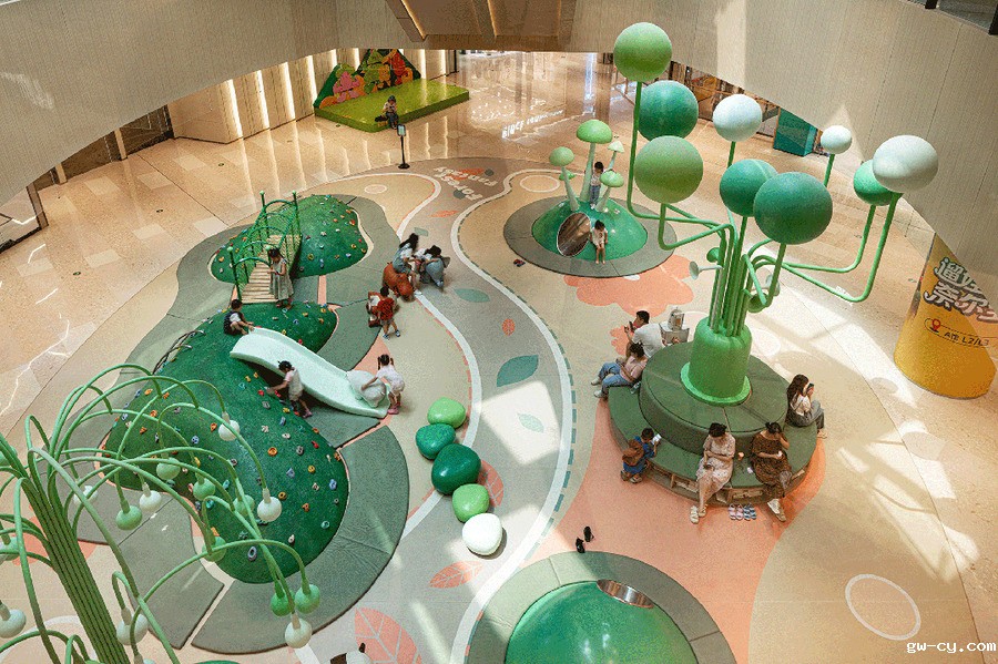 其中云里3楼儿童区的设计秉承自然主义理念,通过模拟自然景观如山丘、溪流和草地,提供多样化的互动体验,激发孩子们的想象力和创造力。同时,儿童活动区与家长休息区的精心规划满足了不同用户群体的特定需求,创造一个安全、舒适的娱乐环境。