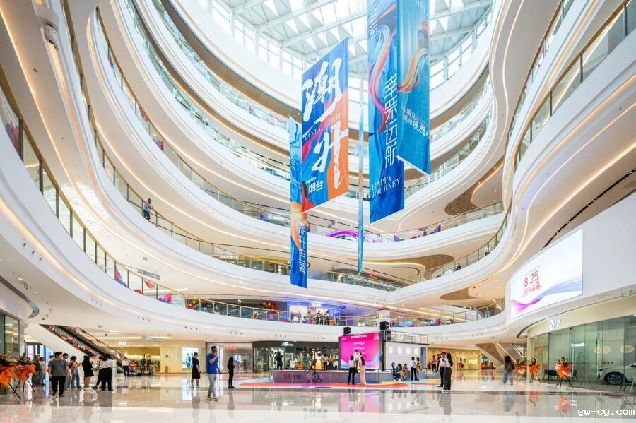 烟台芝罘吾悦广场总体量达12万㎡,项目聚焦目标客户生活方式,将创新业态与商业空间进行高度融合,形成开放型、全业态体验式标杆商业综合体。