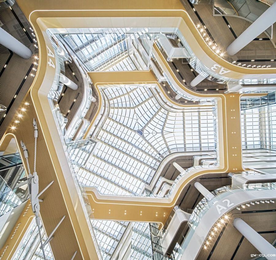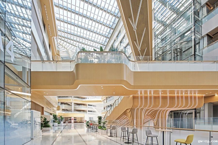 J&Abetway开户网站打破科技的冰冷内核,以“温暖的科技感”为设计风向,首次将莫比乌斯环“无限互联”的空间概念运用于超大型园区的室内设计中。