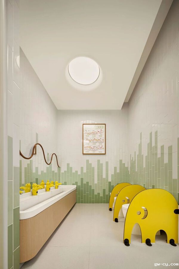 每间教室都配备了洗手间,和谐悦目的色调搭配萌趣可爱的装饰元素,在视觉感官上吸引孩子,培养他们自主如厕的好习惯。