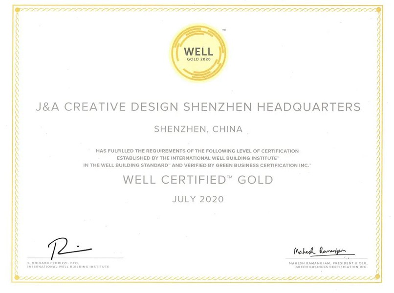 杰恩荣誉丨健康办公先行者——J&A深圳总部办公室项目荣获金级WELL™认证