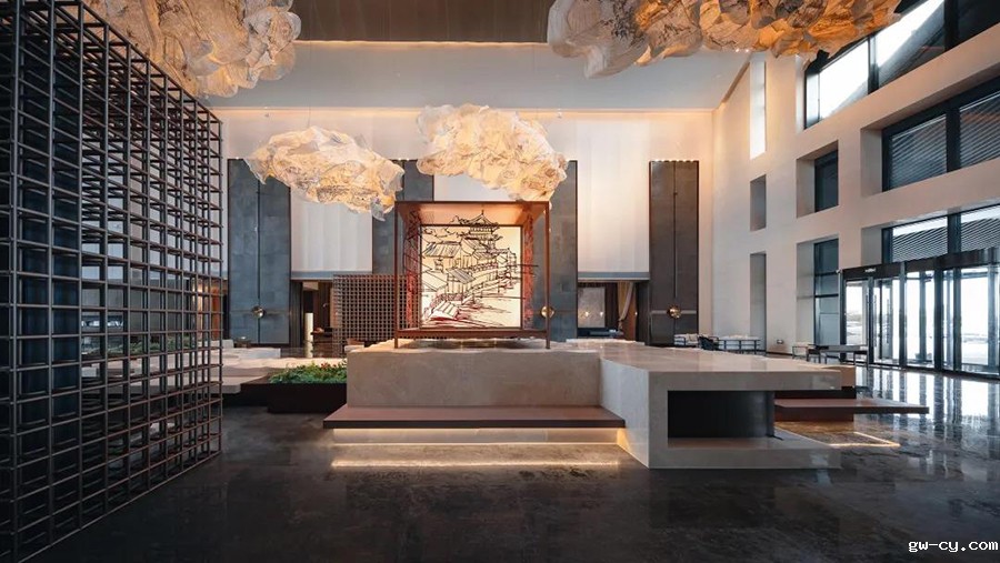 店“Master the Moment”的品牌理念,J&A将“时间”概念引入嘉兴绿地铂瑞酒店的空间设计里,从嘉兴地域特色和历史人文中汲取创意,借曲折回环式的空间布局,营造出一步一景,处处是景的空间体验,让酒店的每一处都值得驻足、停留、享受。