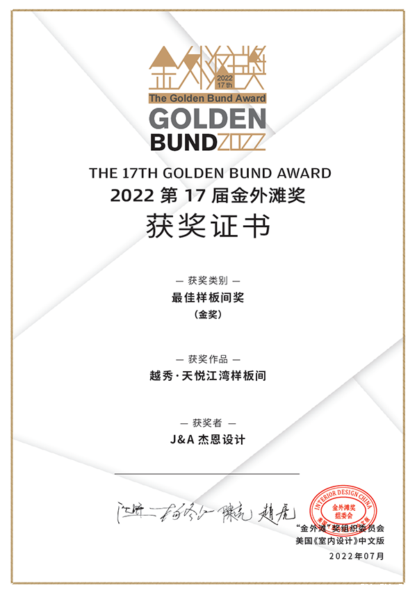 近日,第十七届“金外滩”奖在青岛揭晓,J&Abetway开户网站作品“广州越秀·天悦江湾样板间”项目从众多参赛作品中脱颖而出,荣获十七届“金外滩” 奖金奖。