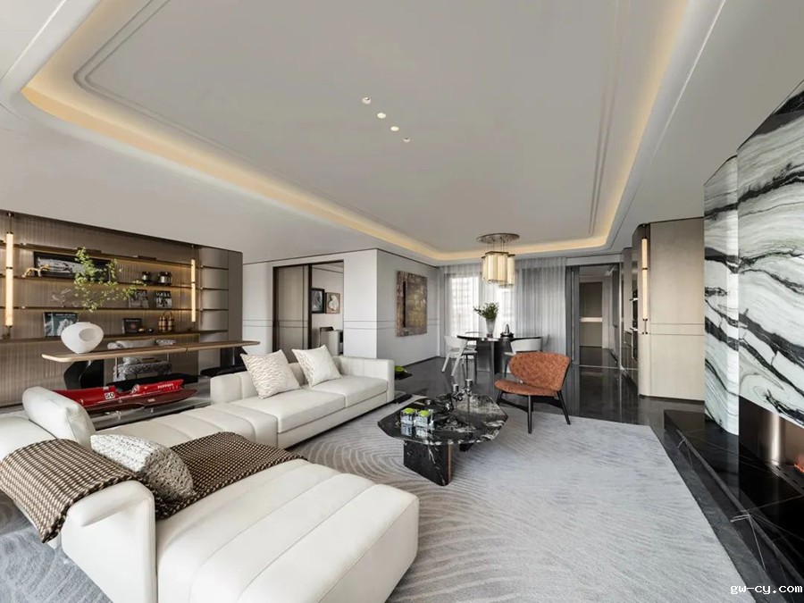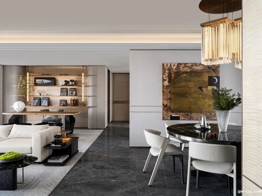 如“懿”似锦的水晶吊灯,搭配对称式的布局设计,无不体现了设计与美感的微妙平衡。开阔性的空间格局,让视觉感官一目了然。