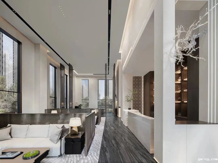 “懿,美也”。立于潮流之外,挖掘生活深层含义,深铁懿府集生态、人文、意境于一体。J&A通过打造强标杆性、有吸引力的展示空间来契合深铁品牌“高端府系”的定位,营造高端住宅社区氛围。