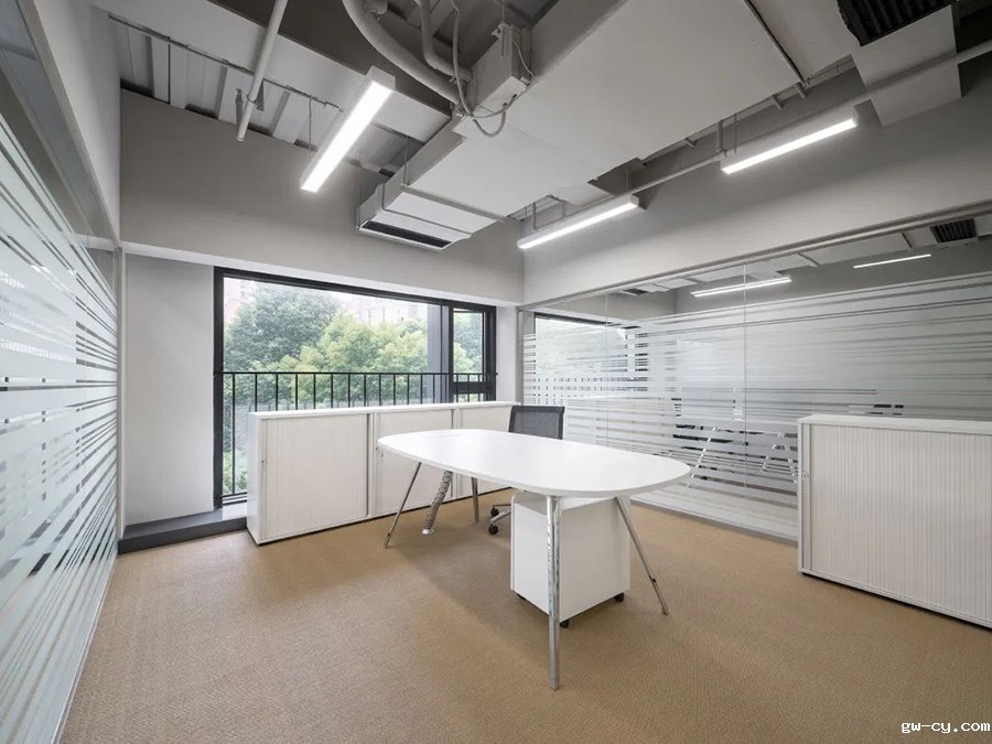 靠窗独立办公区的落地玻璃窗让自然光更多进入室内空间,使得整体空间明快大方,同时也削弱了层高低带来的压抑感。