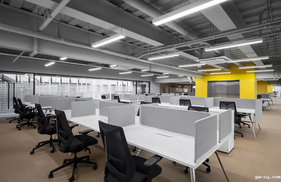 结合柱子和管道设置,设计团队采用有节奏的片墙隔断,规避开放办公区柱子的割裂感。