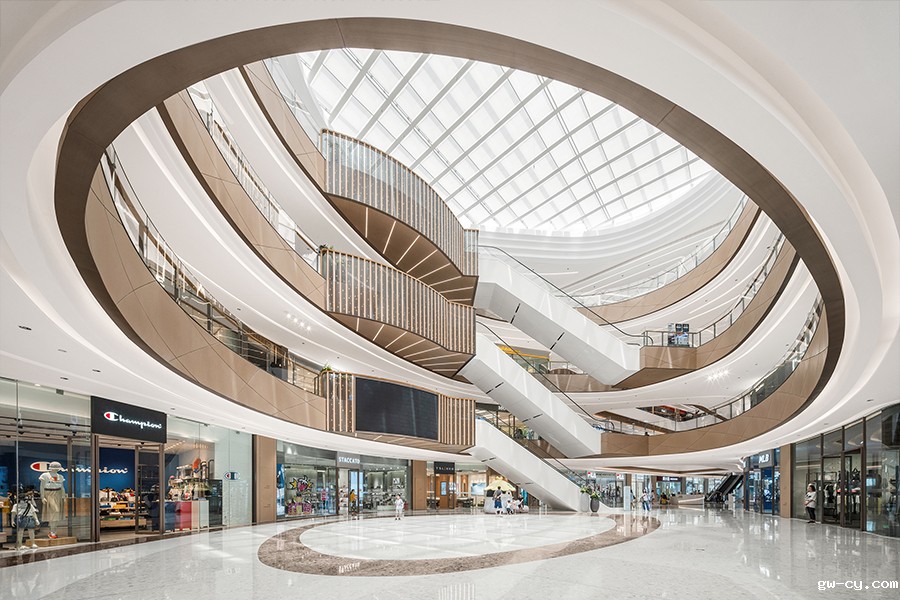 南昌华润万象汇是华润置地在南昌布局的首个购物中心,坐落于南昌市青山湖区,集零售、餐饮、休闲娱乐、亲子于一体。立足购物中心的总体定位、消费群体和地理位置,J&A注重“城市、人文、自然”的有机结合,将自然景观、候鸟的飞行轨迹等元素加以简化,融入到整个购物空间的设计中,旨在打造一个生态舒适的休闲场所,一个放松自在的生活空间。