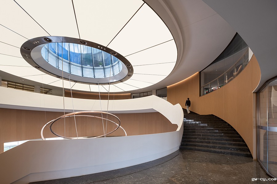 基于对美的集团文化的深入研究和挖掘,结合整体建筑设计“森林之上的科技公园”的愿景。J&A在室内设计中,将企业基因、文化与IP结合,用自然生态的手法体现人与自然的连接,力图打造一个永续、高效、创新、共情的全天候体验型研发办公综合体,创造一个能吸引人和留住人的办公环境空间。