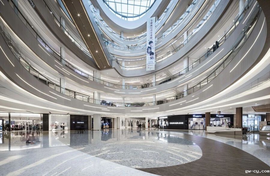 滹沱河是石家庄的传统文化符号之一。JATO将石家庄的历史沉淀和未来风尚连接在一起,取其“水不间断”之意,在空间中延续灵感与美学;主中庭的圆弧形成如河流般的回旋设计,赋予空间一种令人回味的隐喻,让人细细品味“与天地相生共融,与人心相协归一”的境界。